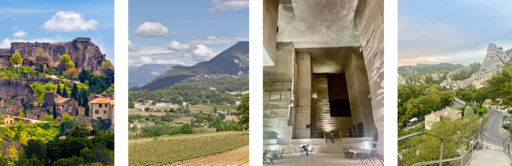 Le deuxième jour, c’était le départ en direction des Baux-de-Provence, un des plus beaux villages de France. Ce trajet de 21 km a été parfait pour profiter des paysages de la région tout en traversant des chemins au cœur de la nature provençale. Arrivée aux Baux-de-Provence, j’ai découvert ce village perché sur une colline, avec son château médiéval en ruines offrant une vue imprenable sur la vallée. Une petite halte dans la Carrière des Lumières, pour une expérience immersive unique, a été un moment fort de cette journée.